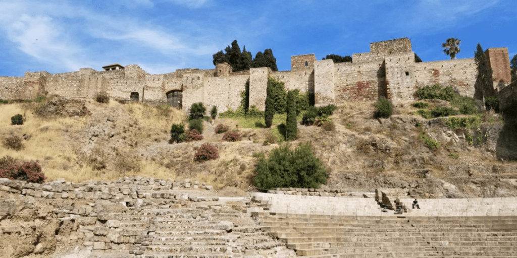 Alcazaba 及 Castillo,其實是兩座建築在山上的城堡,規模極龐大,延綿甚廣,空空廢庭甚多,另有城牆延綿甚長。從城市地圖看,兩座建築物甚實是相通的,但現在的參觀途徑卻要分開,先參觀 Alcazaba,完成後出外,在從旁邊的一條小道彎彎曲曲的再上 Castillo 之城堡。