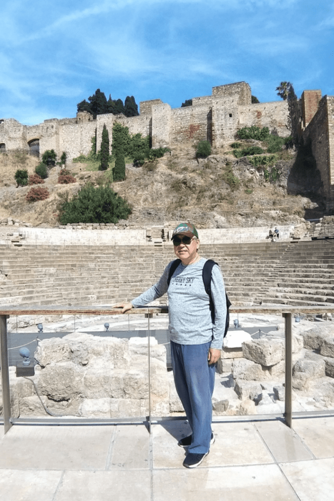 我們下午 5:30 才出外,參觀了摩爾人的堡壘 Alcazaba,,Castillo de Gibralfaro以及「羅馬劇院」Teatro Romano 這三個古蹟都在城市的東面,距離「畢加索博物館」不遠。「羅馬劇院」是古蹟,只剩下數十行的座位階梯以及以前的空地,頗凌亂,只能遙望而不能進內參觀。