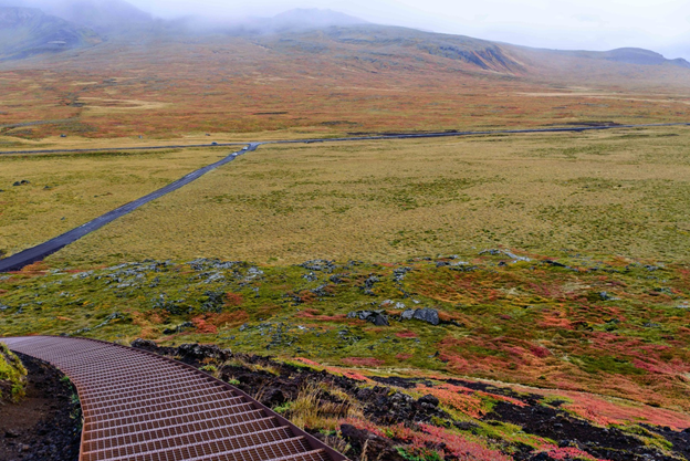 Þingvellir, commonly spelled as Thingvellir in English, is also known for the Alþing (Althing), the site of Iceland’s parliament from the 10th to 18th centuries. The Þingvellir Church and the ruins of old stone shelters are at there.