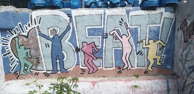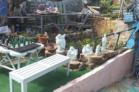他們搜取了各種廢物,放在一起,五颜六色的擺設,加上graffiti, 變成了一個藝術展覽館。