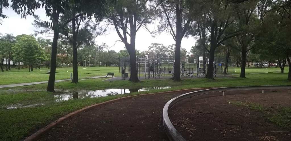 公園內有一個藍球埸,亦有若干健身器械設備。每次散步我都會利用這些器械來健身。