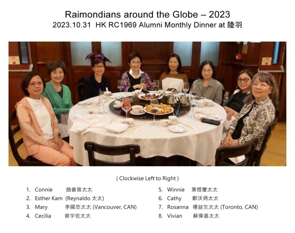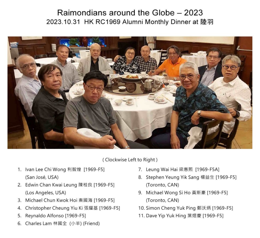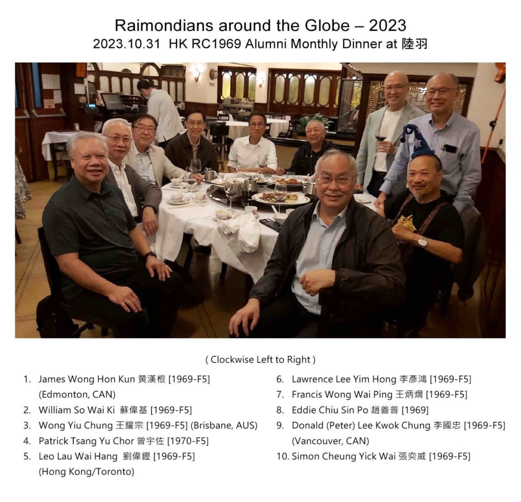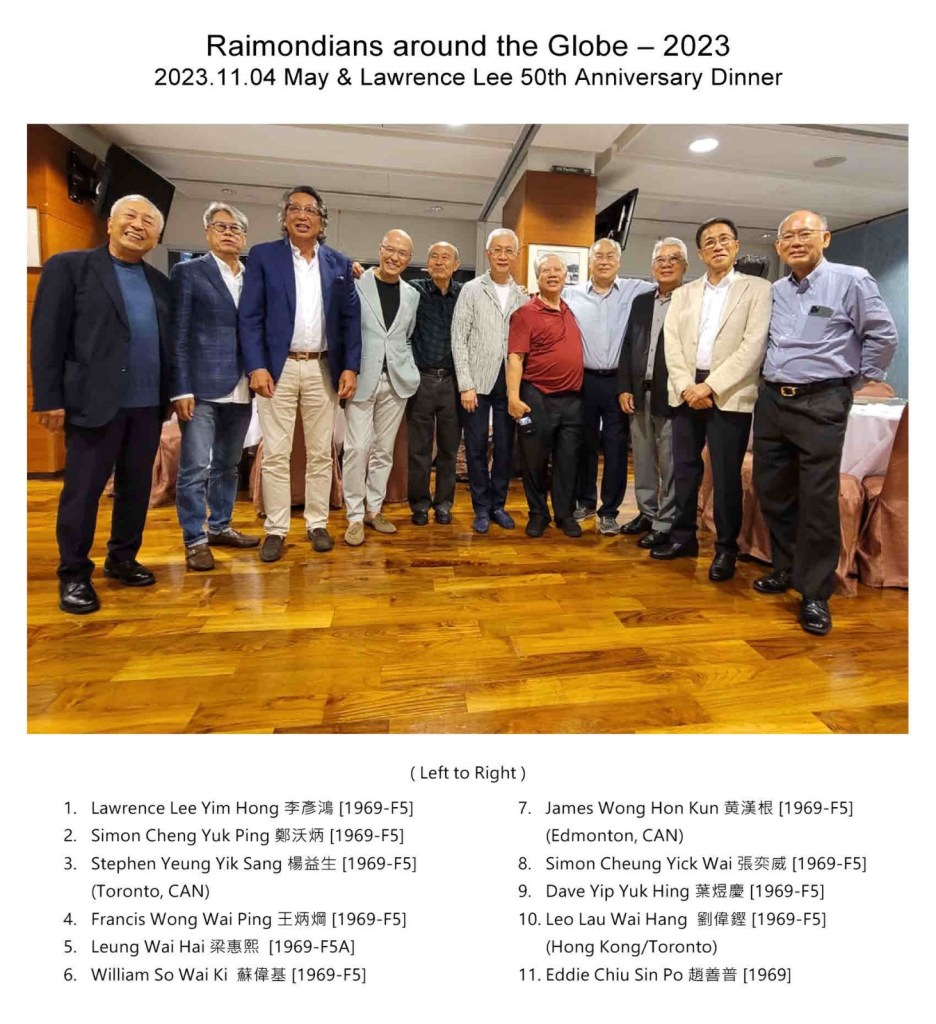 A group of Raimondians from the Class of 1969 participated, and a few of them came from Canada. Also, a group of students I have taught and guided since 1981, 2020 and 2022 attended. Classmates of my wife’s Cantonese opera lessons also participated. My children, their spouses and our grandsons were there to make the occasion perfect.
